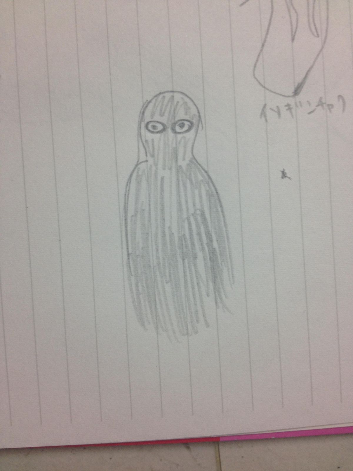横顔だったし遠かったけど顔は人の顔に近かったけど鼻にあたる突起がなくて、鼻の下(上唇?)がすごく長いみたいな感じで、目は彫刻刀で彫ったような切れ長な形。