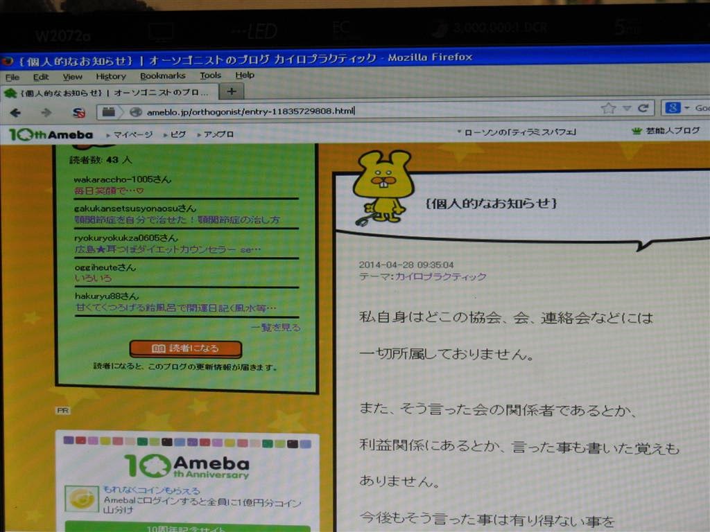 どういう訳か、工作員No. 2はブログに「アトピー・ビジネス」がどうこうと書いていた