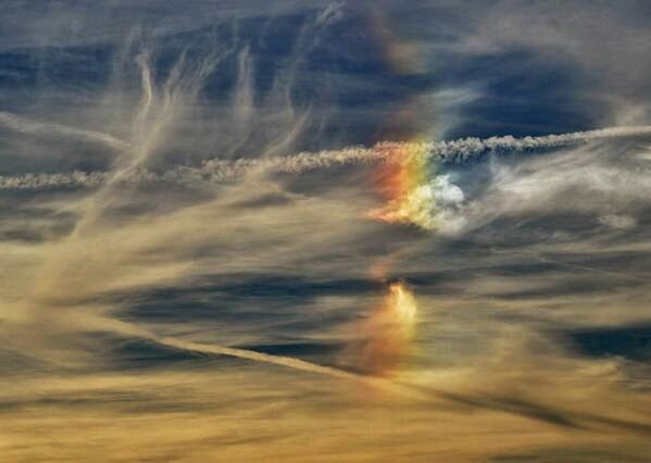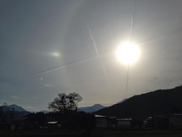 例の虹色はケムトレイルに含まれる金属毒ゆえの反射ですね。