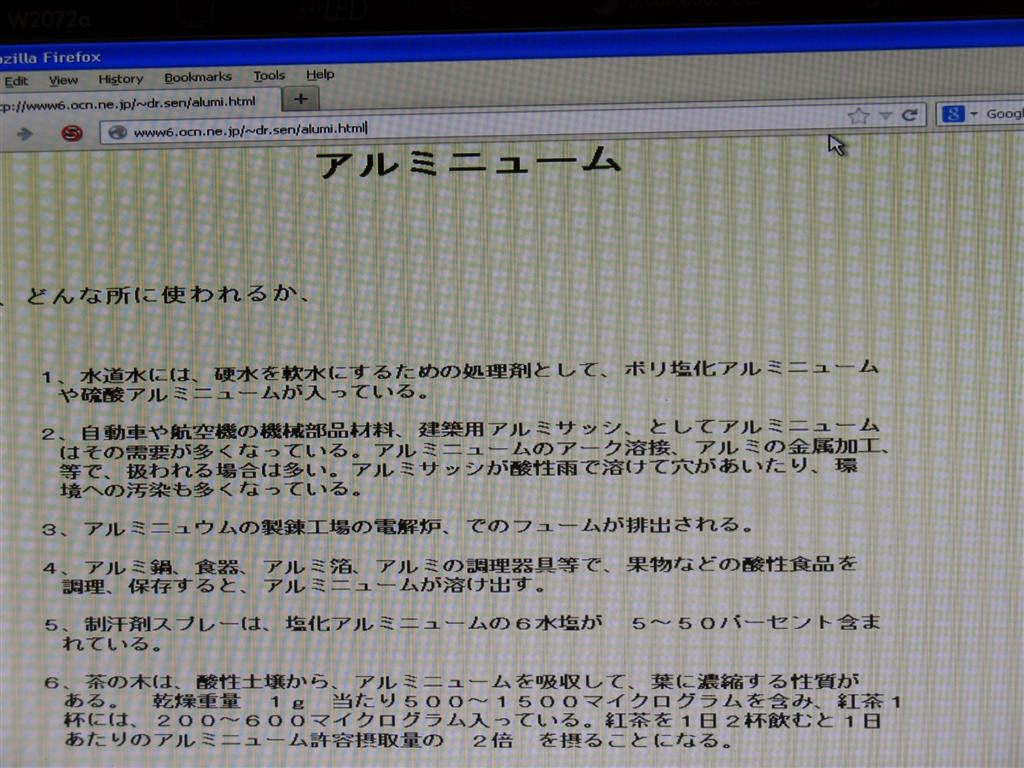 葉月がブログとコメントに書いたように、ゼオライトは「鉄や亜鉛を取り、アルミを人体に与えるものだ」というトンデモの嘘を言って、彼女にディトックス剤としてゼオライトを教えた私を恨むように仕向けたのではないか? それ以前から出ていた足の痙攣が「ゼオライトをやってから止まらない」と書いてきたが、それはゼオライトも 自分で人に勧めた酵素風呂も