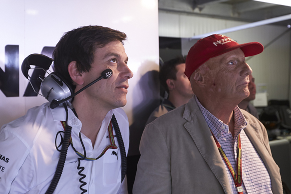 スパでのレース中、メルセデスのモータースポーツ責任者トト・ヴィルフと非常勤会長のニキ・ラウダが、メルセデスの取締役トマス・ウェバー教授と話し合っていた。