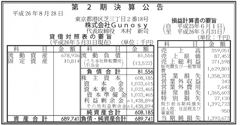 株式会社Gunosyの決算情報