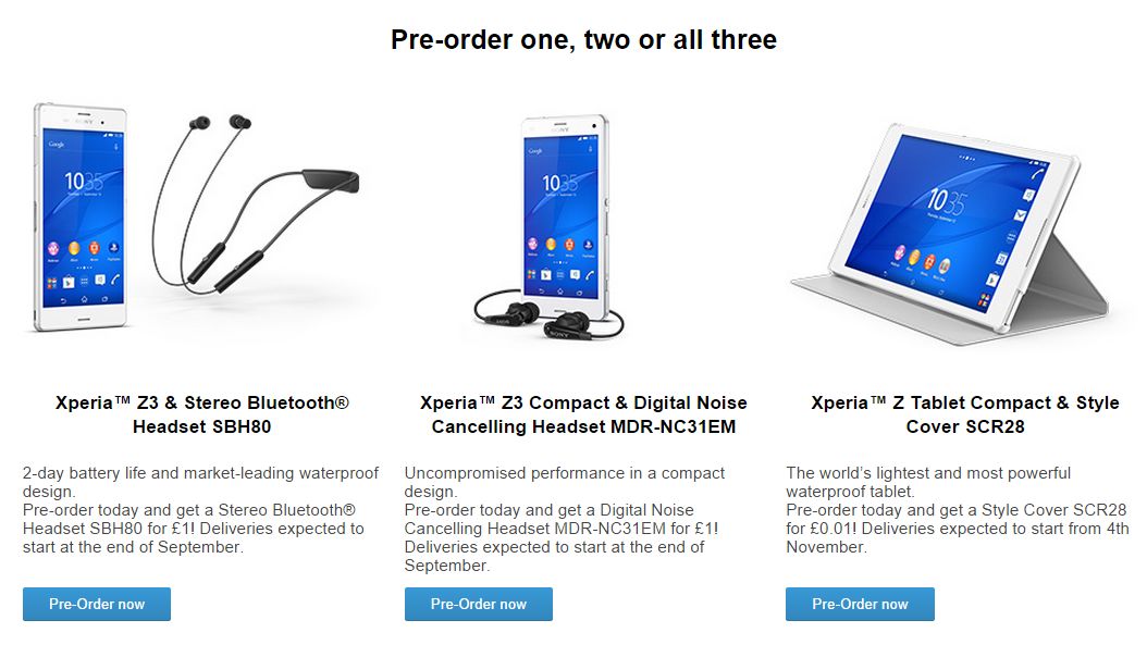 なお、発売開始日につては、 「Xperia Z3」と「Xperia Z3 Compact」は9月26日、「Xperia Z3 Tablet Compact」は11月4日とのことです。