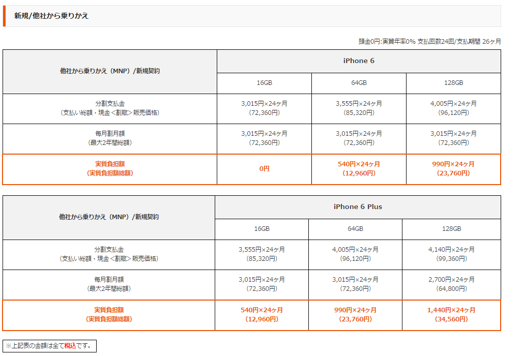 今度、AUの6の64GBにMNPすると、月々支払いは総額でどれくらいになるんだろう