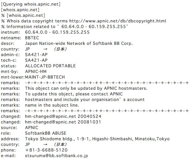 LINE乗っ取り LINEウェブストアにアクセスしようとした日本のIP「60.148.124.208」whois検索結果