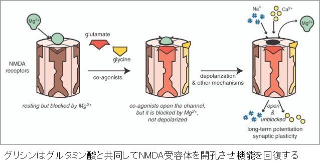まず、NMDA受容体のグリシン結合部位へのアベイラビリティは、グリシンまたはD-セリンの投与により増加させることができる。