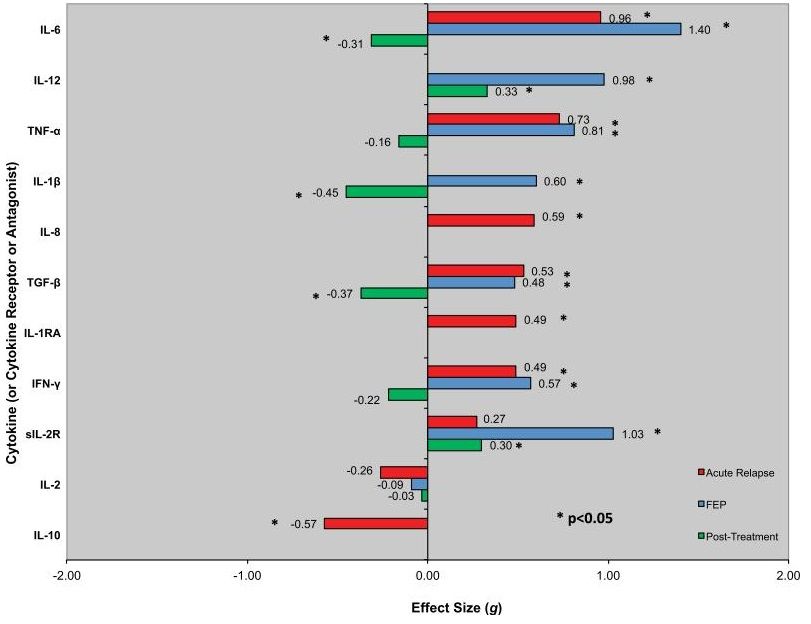 FEP患者における潜在的な炎症誘発性状態に関する情報は、末梢血マーカーから得ることができるであろう。そして、炎症性因子と抗炎症因子の偏りが、FEP患者だけでなく急性増悪の病態にある慢性患者においても同じような程度で存在することが示されている。