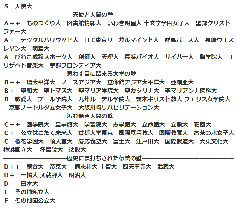 一位は天使大学か