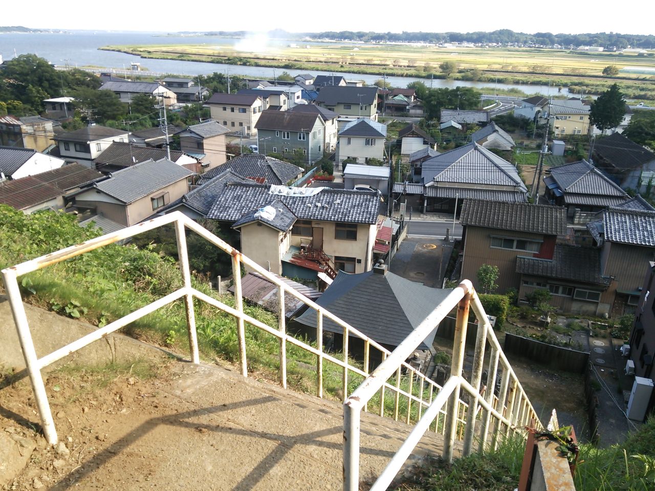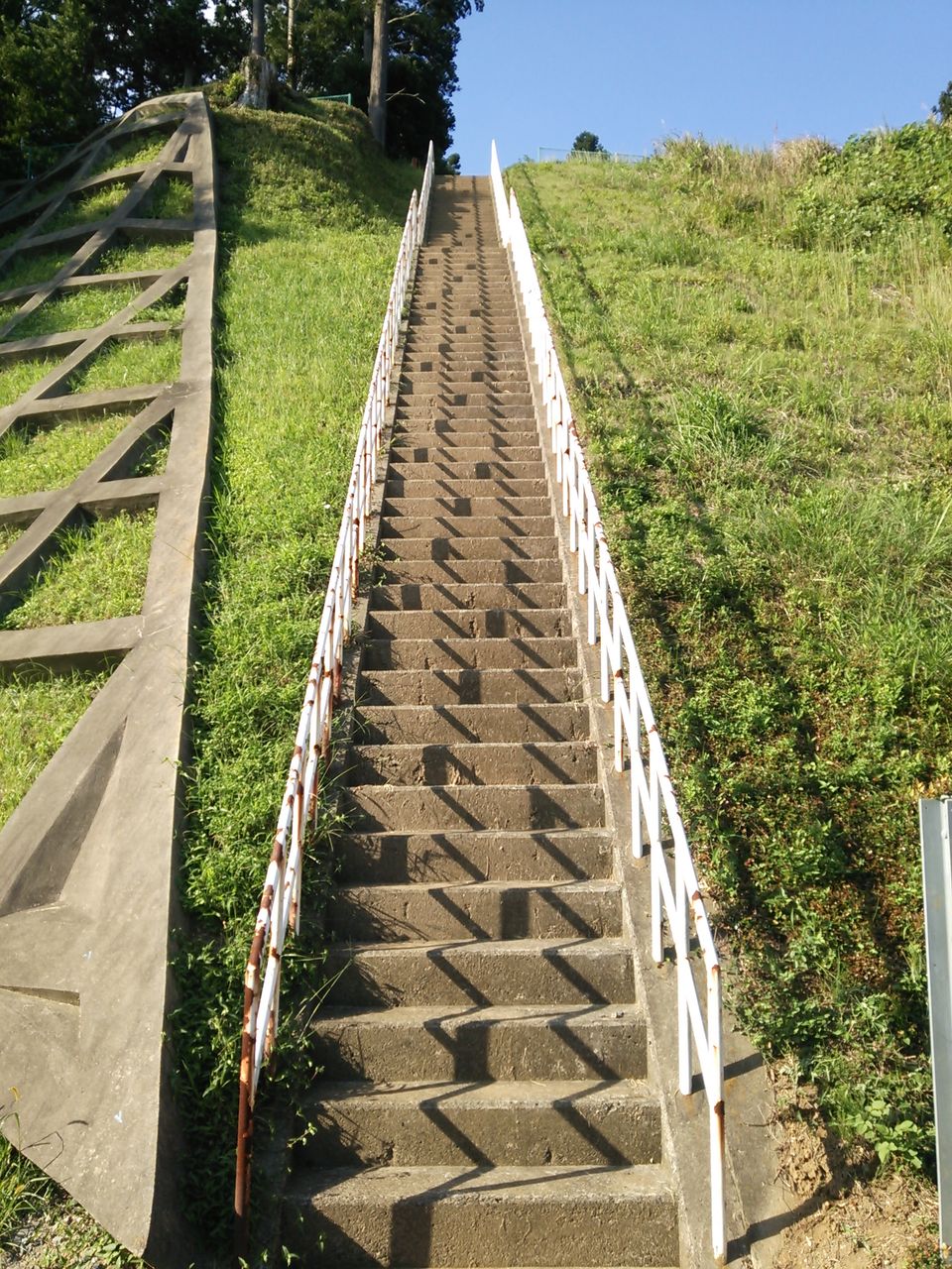 そんなこんなで千代田石岡ICを降りて車で15分くらいで目的地に到着です。遠目でもすこやんが立ってた場所はすぐに見つかりました。しかしこの階段、まるで作画崩壊しているかのごとく結構急角度です。