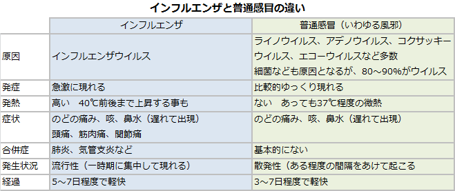 インフルエンザと普通感冒の違いとは?