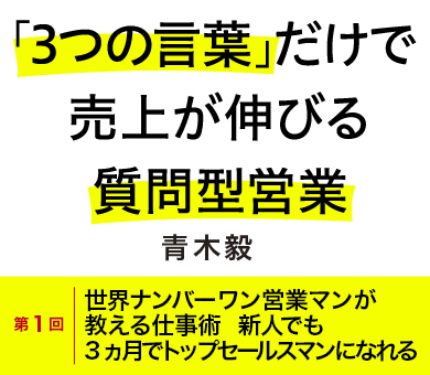 説明重視で成功した営業マンが苦悩し、これまでの自分をリセットして生まれたのが「質問型営業」。世界ナンバーワン営業マンになれた秘訣は、「営業マンが売るのではなく、お客様が買う」という言葉どおりに、質問を通してお客様の欲求を高めたこと。これまで2万人を超える営業マンに教えてきた営業術を、『「3つの言葉」だけで売上が伸びる質問型営業』の解説とともに紹介します。