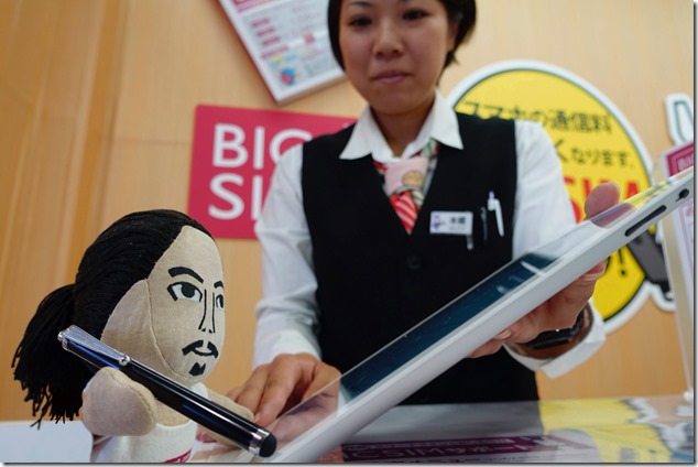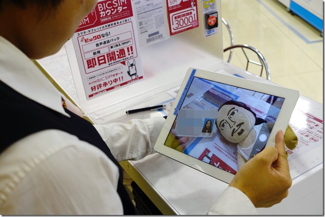 その後は、カウンターにあるiPadに、BIC SIMの音声通話パック(別売2990円)に記載されているエントリーコードを入力します。さらに、mioIDなる、通信会社のアカウントを取得。このため、本人確認用に現場で受信できるメールアドレスが必要というわけです。もちろん、メールの受信にもカウンターのiPadが利用できます(IDとパスワードはiPadに保存されません)。