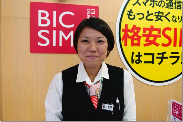 訪れたのはビックロ ビックカメラ 新宿東口店。地下1階のケータイコーナーにある赤いBIC SIMカウンターに向かいます。対応してくださったのは本郷さん。