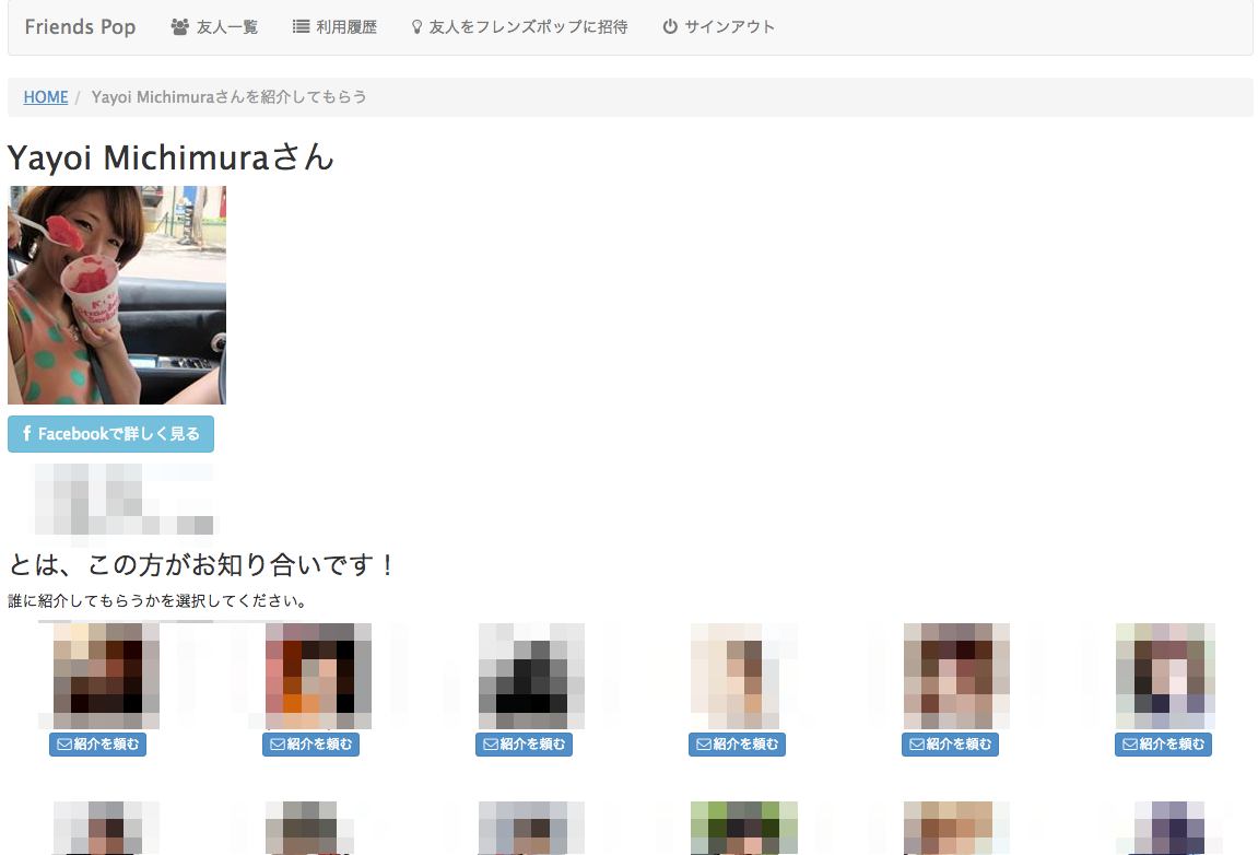 そしたら共通の友人が下にずらっと並ぶので誰に紹介してもらうか選ぶ。この場合は当然須田さんにお願いします。