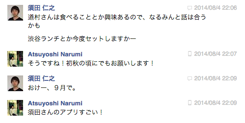 そしたら須田さんにメッセージが届いたみたい。「ぼくと話が合うかも」とのことでした。今度ランチをセッティングしてもらうことに。