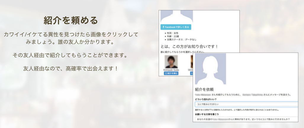 こういう使い方ですね。仕事上の必要性に迫られて面識のない方にお会いしたいと思った時、Facebookで共通の友人を探して紹介をお願いすることはよくあります。突然メールを送るよりもいい感じに話が進んだりしますね。
