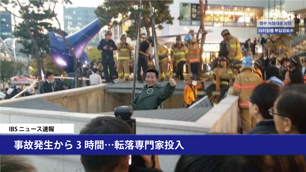 同日午後5時50分、京畿道(キョンギド)城南(ソンナム)板橋(パンギョ)テクノバレー付近で開催されていた野外イベント中に排気口が崩壊し、来場者約30人が10m下に転落する事故が発生した。この事故で2人が死亡し、13人が救助されたと伝えられている。