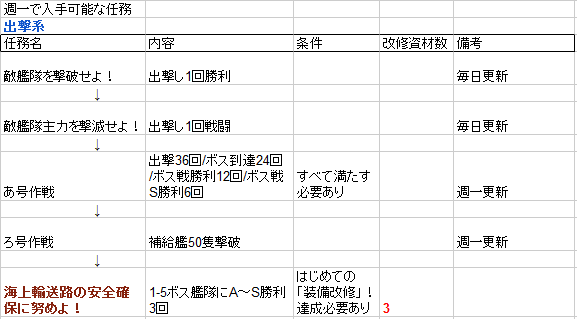 内容:3-3~3-5のボス艦隊に勝利5回