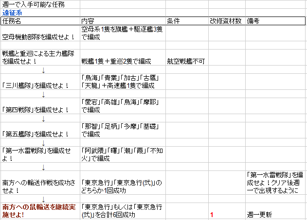 週一で入手出来る任務