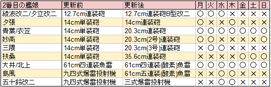 第一艦隊の2番艦に曜日ごとに決められた特定の艦娘を配置すると