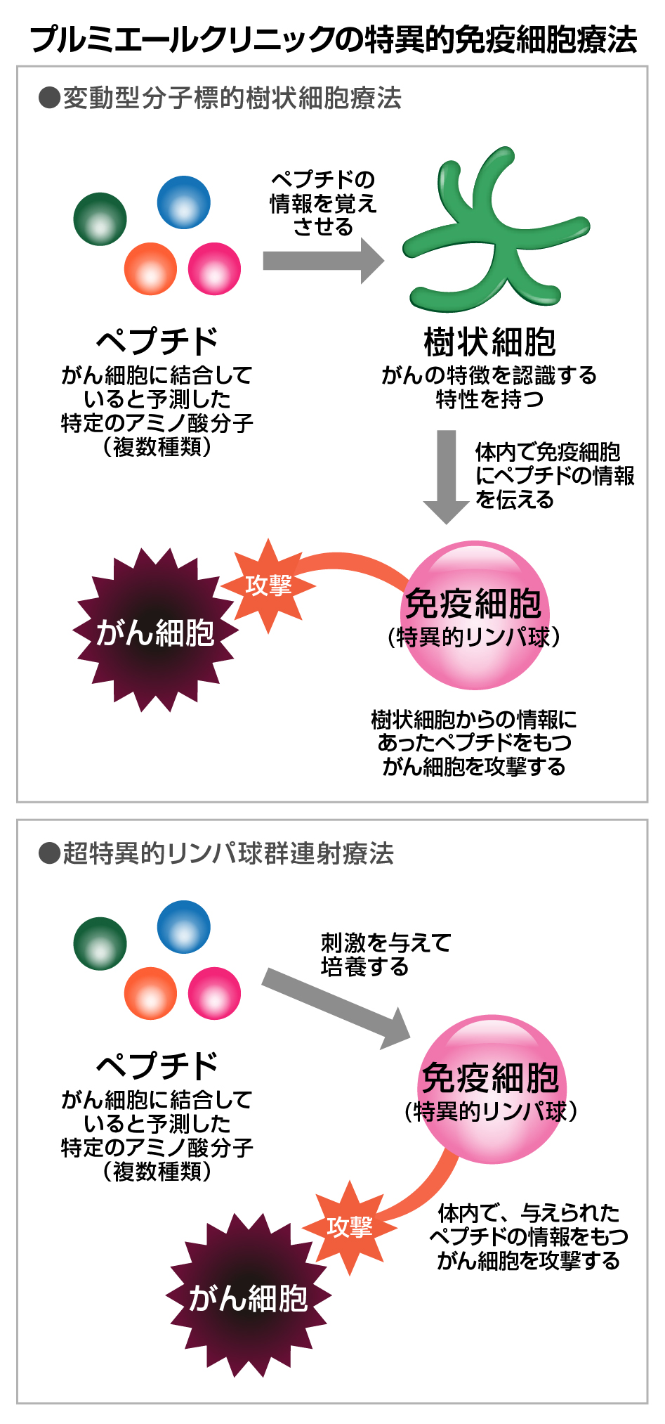 プルミエールクリニック付属研究所との連携により、お一人おひとりの免疫解析を検査したうえで、超特異的リンパ球群連射療法や活性化樹状細胞療法など各種免疫細胞療法や各種温熱療法など星野式の最先端医療を提供しています。その他、分子標的療法、サプリメント療法、期待を高めている再生医療など、東京本院と同様に、患者さまに最適なテーラーメイド医療を実践しております。