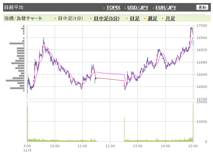 ラジオ日経の株番組「北浜の株式宅配便」放送中は下げていた日経平均、引けにかけて反発し74円高でした。結果的にいつものように「株が上がるぞ、水曜日」に。正直今日は小幅反落を想定していたので、少々意外感ありです。でもこんな意外感なら毎日だって歓迎です。