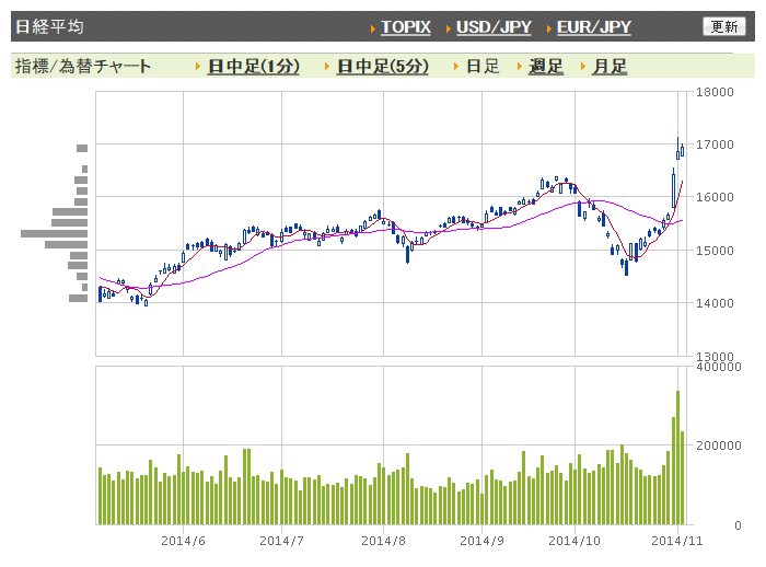 — 岡三マン (@okasanman) 2014, 11月 5直近の日銀出動、額。 pic.twitter.com/81D6N4fbf2