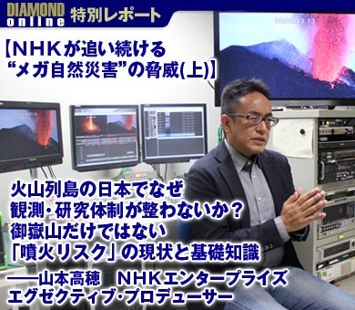 NHKの制作陣は、今なぜこうした番組をつくったのか。彼らがテレビマンとして視聴者に訴えようとしたメッセージとは何か。これから2回にわたり、「MEGA DISASTER」の制作者が、膨大な取材の過程で得た知見や最新情報を交えながら、「火山大噴火」「巨大地震」への問題意識を語る。