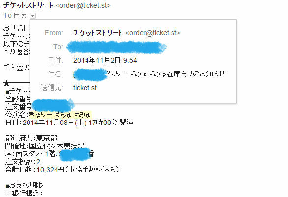 4.あっという間にチケットが到着。