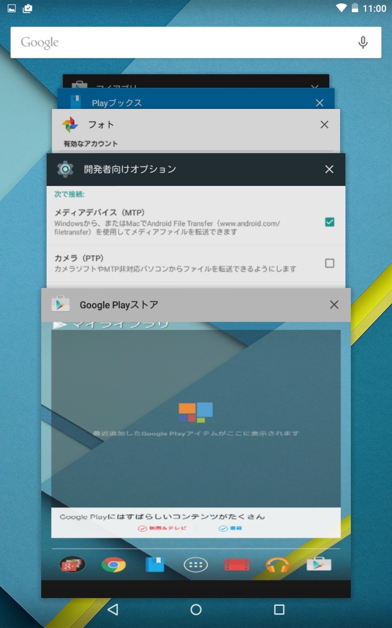 というわけで、再起動したら無事にNexus 7の2012年モデルがAndroid 5.0 Lollipopになりました。復習しておくと、Android 5.0 Lollipopでは5000以上の新しいAPIが導入されたり、新たにメモ帳からデザインされたフラットデザインかつ見やすいカードデザインを採用した「Material Design(マテリアルデザイン)」に変更され、見た目も洗練される上、視認性や使い勝手も良くなるとされています。