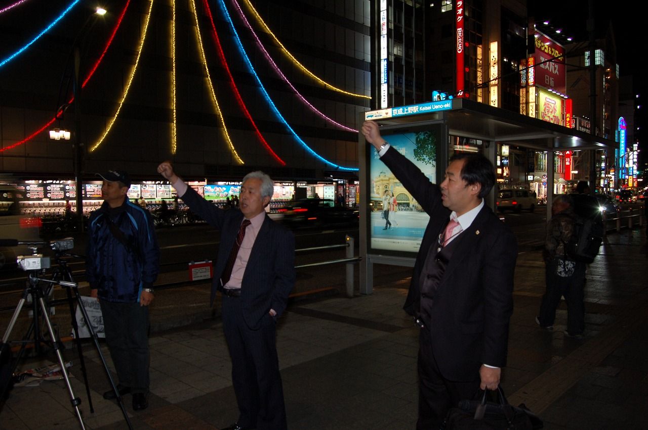 上野界隈での街宣で時折、関心を示した方が立ち止まって聴き入る