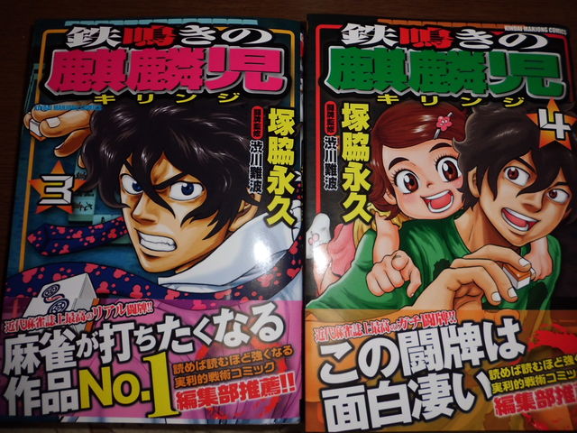 この「鉄鳴きの麒麟児」は、1巻も2巻もなかなか出なかった記憶がありますし、「リスキーエッジ」のように近代麻雀読者人気は高くても単行本はあまり売れないのかなぁと思っていましたが、こうしてなんとか3,4巻の発売を実力でもぎ取ったのでしょうか。良かったです。