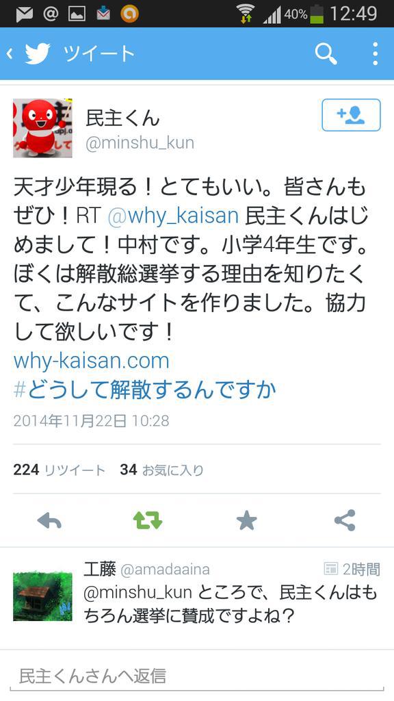 >案の定の出来事だった。解散を恨むような人物・団体といえば、民主党しか思い浮かばない。小学4年生のふりをするとは、呆れた宣伝方法である。