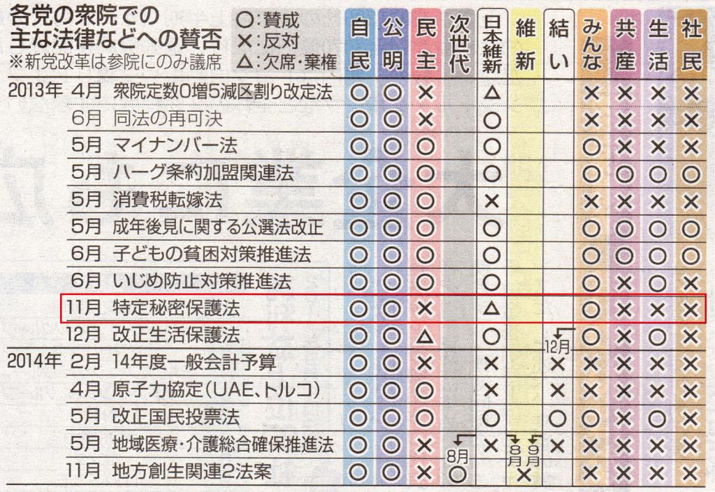 特定秘密保護法は、行政府を国会の上位に位置付け、国民が真実を知ろう としたり国民に真実を知らせる事を厳罰に処すという法律 □ |