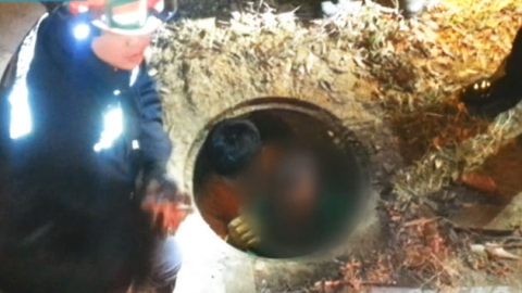 60대 남성이 맨홀 속에서 구조대원들의 손길을 기다립니다.