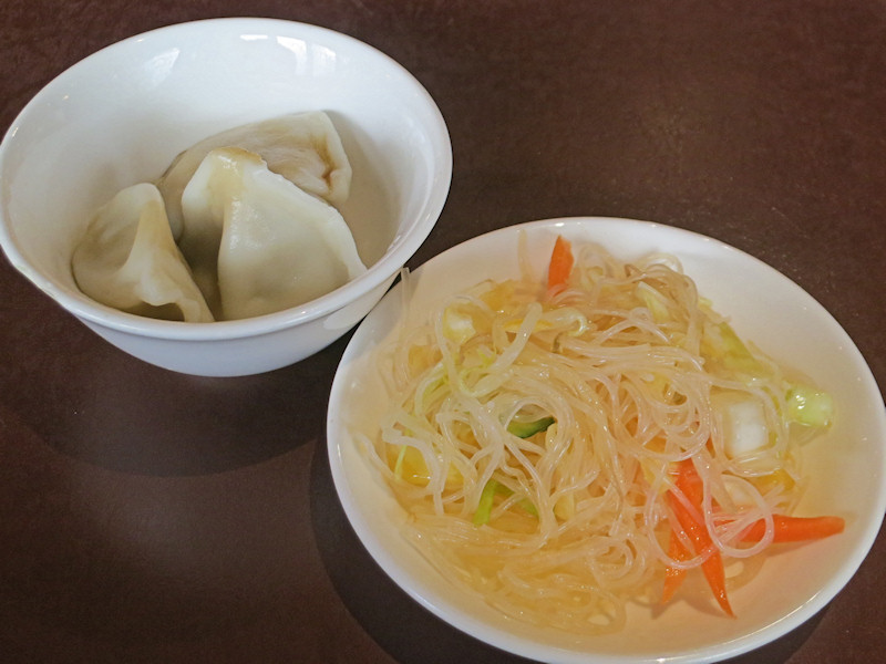 オーダーを済ませて、厨房近くに用意されたテーブルに近寄って水餃子を三つ取ります。