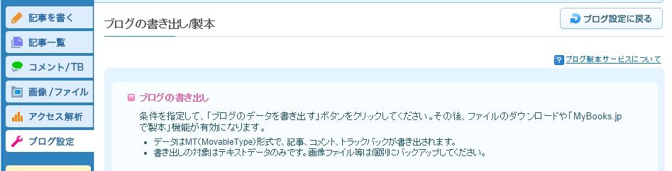 これ、本当に大事ですよ。バックアップが簡単にできない信じられない無料ブログもありますが、livedoorBlogは簡単です。