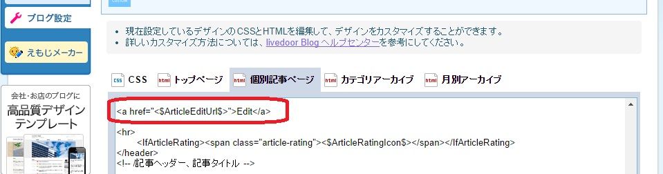 ブログに記事編集画面へのリンクを追加する(livedoor Blog ヘルプセンター)