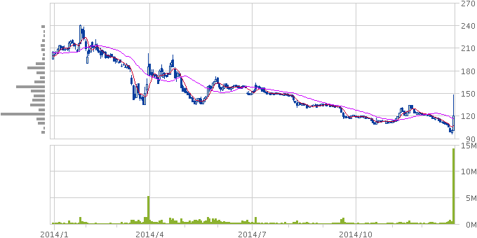 上場廃止を免れたメガネスーパーが2日間「メガネスー↑パー↑」した後にお約束の「メガネスー↑パー↓」 http://t.co/8cYeRpTRff