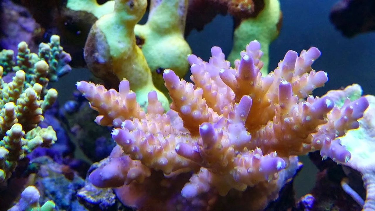 亜鉛で白化した珊瑚もあればこの珊瑚みたいに一気に色揚りした固体もあります。