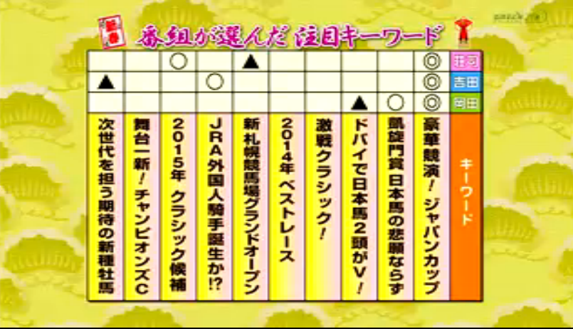 なぜ速報にこだわるのか、よく分かりませんが・・・先ほどグリーンチャンネルで新春BIG対談が放映されたので、内容をまとめておきます。