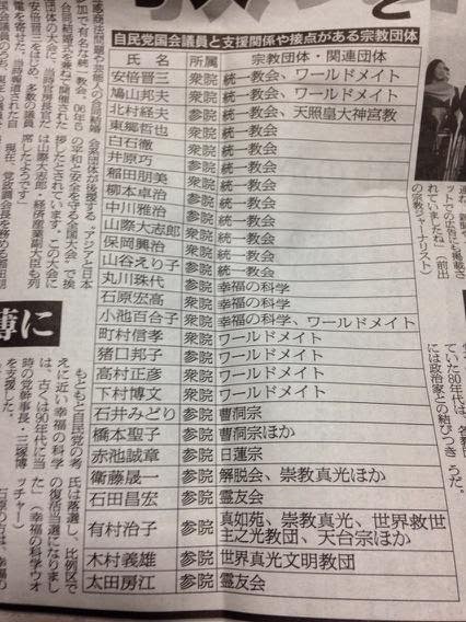 自民党国会議員と接点がある宗教団体(日刊ゲンダイ)