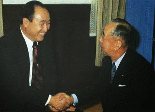 1968年 4月1日 日本で、「国際勝共連合」を創設。統一教会の初代会長、久保木修己を会長に、笹川良一を名誉会長に。
