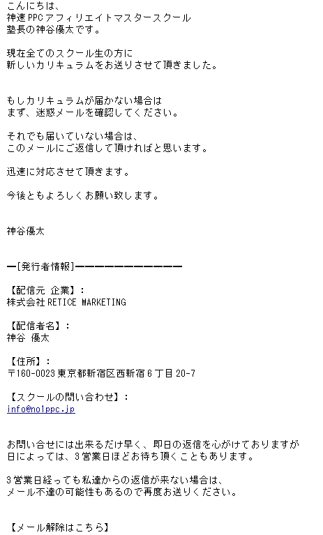 神谷優太神速PPCアフィリエイトマスタースクールのカリキュラムが届きません(笑)