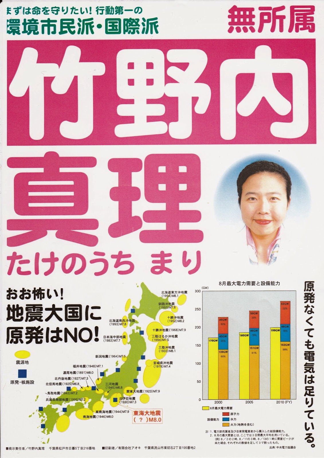 - 竹野内真理「被曝対策が不十分である これだけの理由 (東日本大震災に想う(2)原発はいらない)」あごら330号、