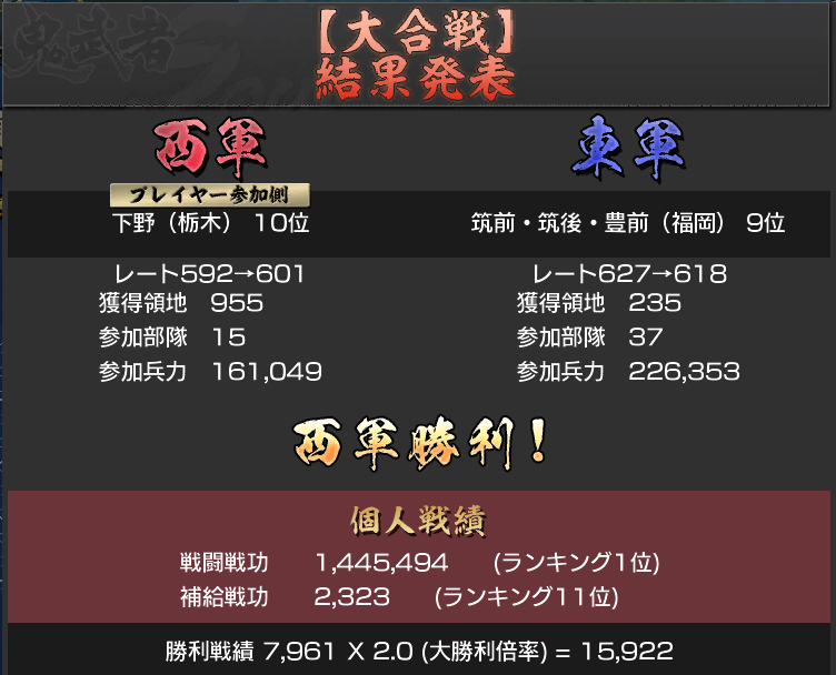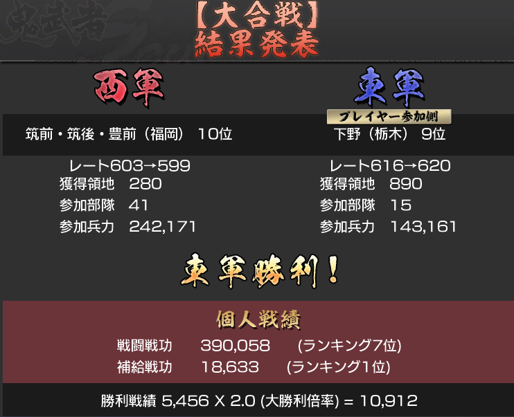 大合戦関連の記事は最近少な目ですが、