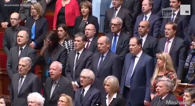 【動画】黙とう中、一部議員が仏国歌…徐々に大合唱へ 議会で議員や閣僚が国歌を斉唱したのは第1次大戦終結以来初めて politicians sing French national anthem