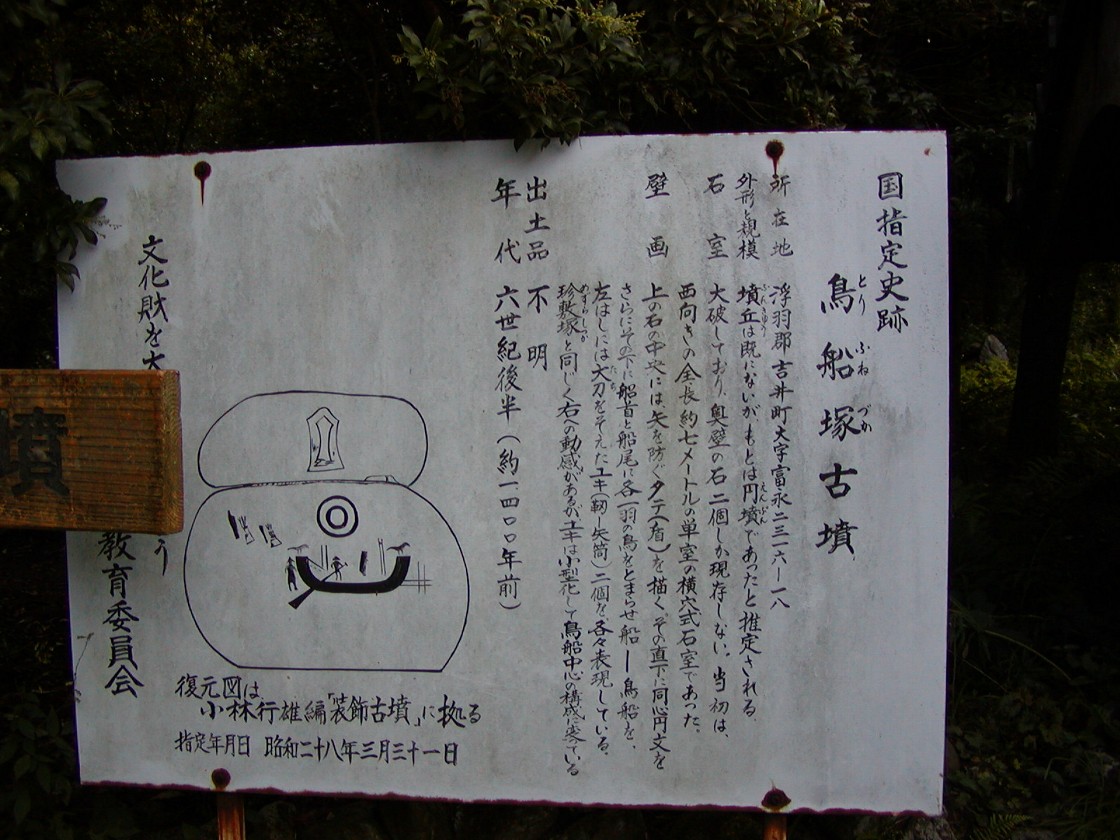 鳥船塚古墳は現うきは市(旧吉井町)富永にあり、珍敷塚古墳から水縄山側に登り、原古墳の前を過ぎて更にしばらく登ったところにあった。
