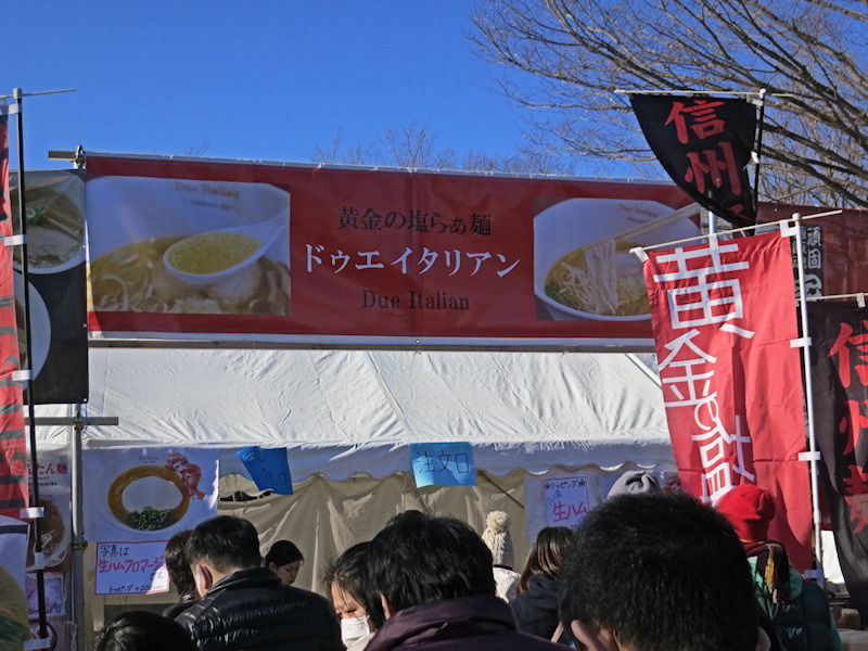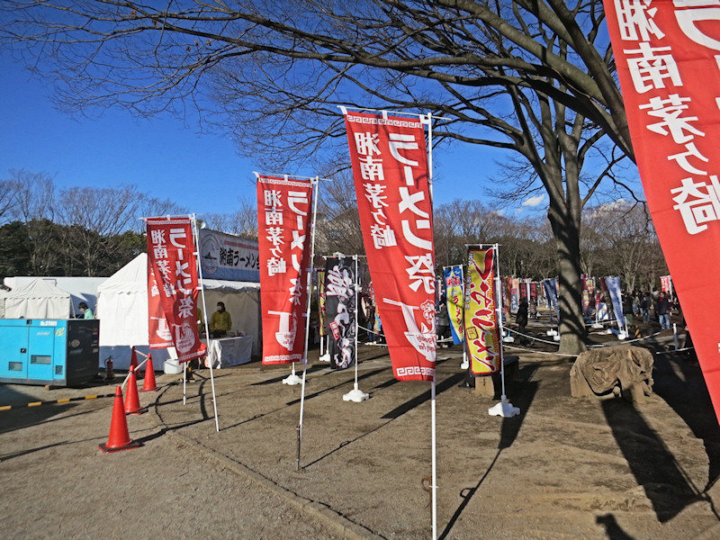 初日の14時過ぎのタイミングで、一番並んでいたのは新潟なおじで30人くらい、二番目が京都熟成細麺らぁ〜めん京@京都市で20人くらい。