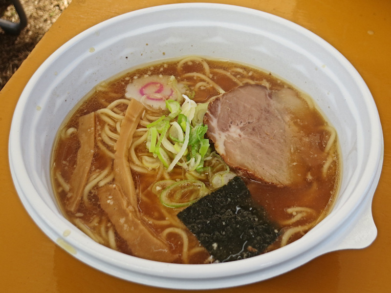 かなり人は多かったけど空き席が見つからない人はいないみたいで、その長机以外の公園のベンチ(木株)でラーメンを食べている人もいました。